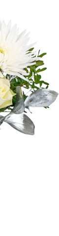 4 White Roses, 2 White Spider Chrysanthemums, Thistles and Pinecones